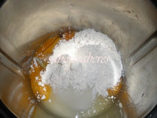 No copo da bimby coloquei os ovos, o açúcar e a farinha e a margarina.