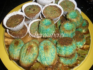 Desta vez ficaram super diferentes do que sempre se fez em minha casa, porque juntei côco ralado azul.