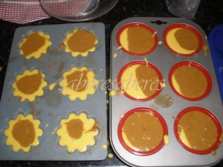 Deita-se o preparado nas formas de queques e assim ficam bi-colores.