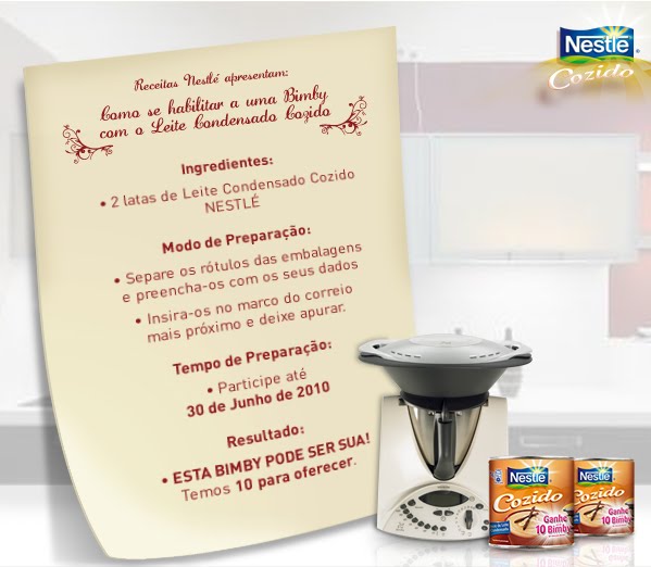 Recebi este mail hoje da Nestle. Para quem já tem uma bimby e quer outra ou para quem nao tem nenhuma bimby - acho que vale a pena sempre tentar.