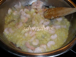 Num tacho coloque a cebola picada, junte-lhe a margarina e leve a refogar.